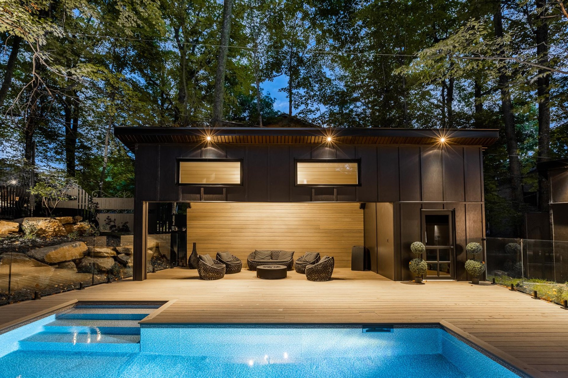 Bâtiment et patio extérieur